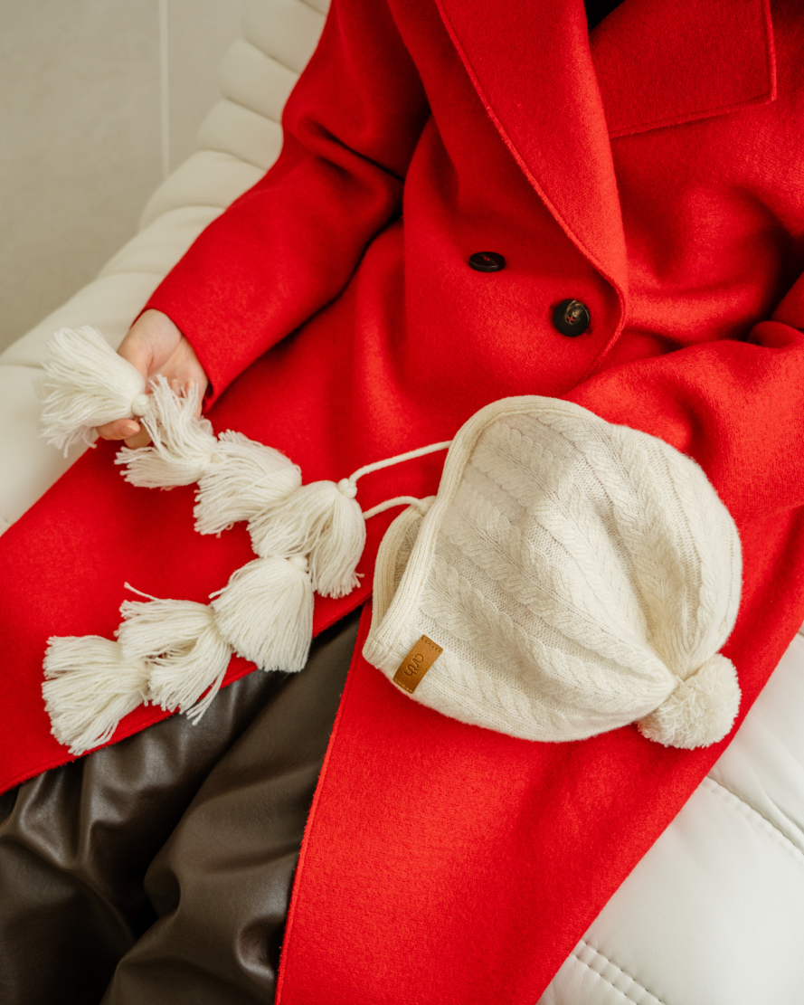 どこか懐かしく、レトロなポンポンがアクセントとなり、冬の装いに遊び心を添えます。